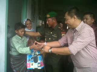 Saat penyerahan bingkisan dan uang santunan, Mayor CZI Mahfud sempat mengajak senyum Aldi Rivana usai disunat