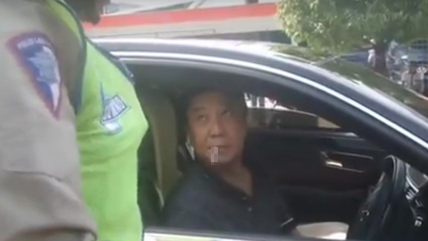 Sebuah rekaman video memperlihatkan seorang pengendara mobil Mercy melawan ketika tidak punya SIM dan KTP dirazia polisi