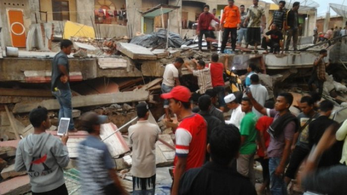 Detik-detik saat warga berhamburan menyaksikan evakuasi dan bagunan roboh usai gempa di Pidie Jaya, Aceh