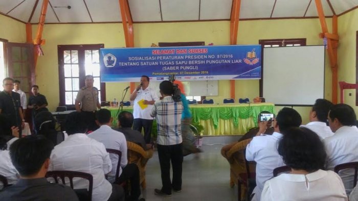 TRIBUN-MEDAN.com, PEMATANGSIANTAR - Polisi dan Kejaksaan Pematangsiantar menjadi pembicara dalam acara Sosialisasi Peraturan Presiden No 87 /2016, Tentang Satuan Tugas Sapu Bersih Pungutan Liar (Saber Pungli) kepada civitas sekolah di Kota Pematangsiantar, Rabu (7/12/2016)
