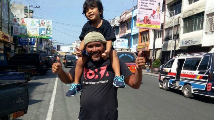 TRIBUN-MEDAN.com, MEDAN - Masih ingat dengan Togu Simorangkir? pria yang mendedikasikan waktunya untuk pengembangan minat baca di daerah pesisir Danau Toba ini kembali membuat aksi yang tidak biasa.