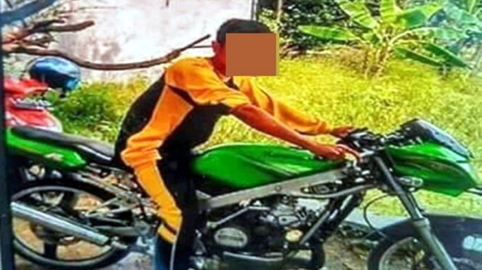 Foto tersebut memperlihatkan pria yang dicari wanita itu menaiki sebuah sepeda motor berwarna hijau.