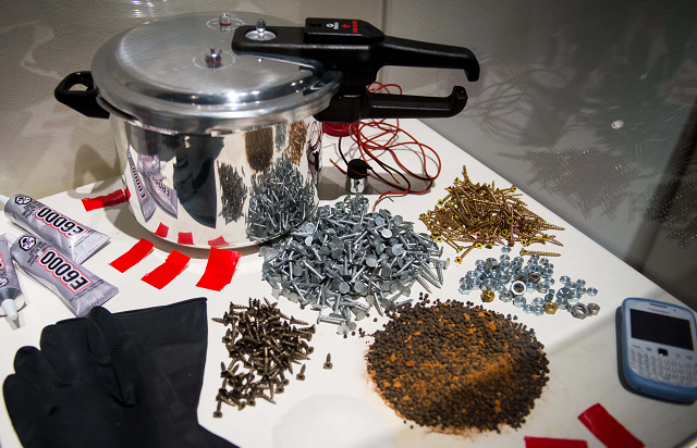 Detasemen Khusus Anti Teror atau Densus 88 untuk kali pertama menemukan rangkaian bom panci dalam penggerebegan di sebuah kamar kos di kawasan Bintara, Bekasi, Jawa Barat, 10 Desember 2016.
