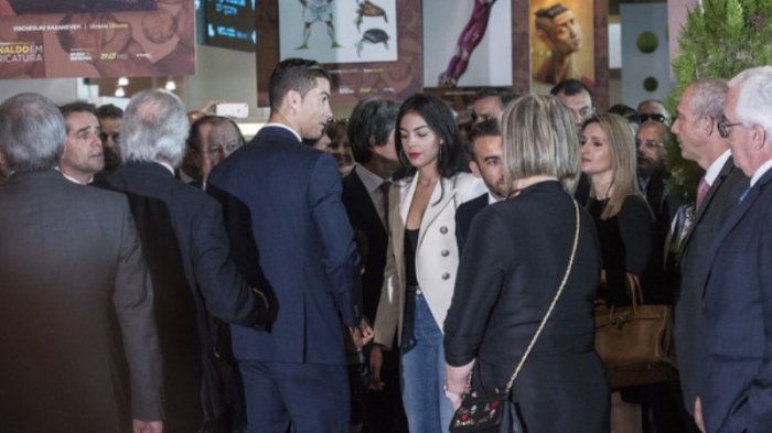 Pada foto tersebut, Ronaldo terlihat sedang memegang perut Georgina yang mengenakan busana serba minim dan ketat.