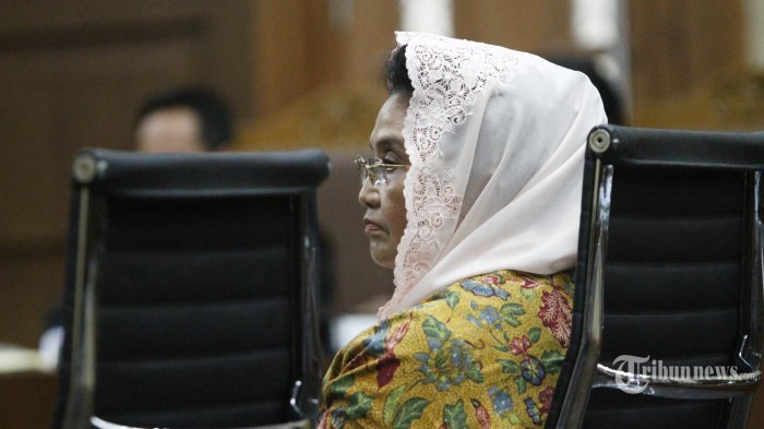 TRIBUN-MEDAN.COM, JAKARTA - Terdakwa Menteri Kesehatan RI 2004-2009 Siti Fadillah Supari tidak kuasa menahan air matanya saat membacakan nota pembelaan atau pledoi di Pengadilan Negeri Tindak Pidana Korupsi Jakarta, Rabu (7/6/2017).