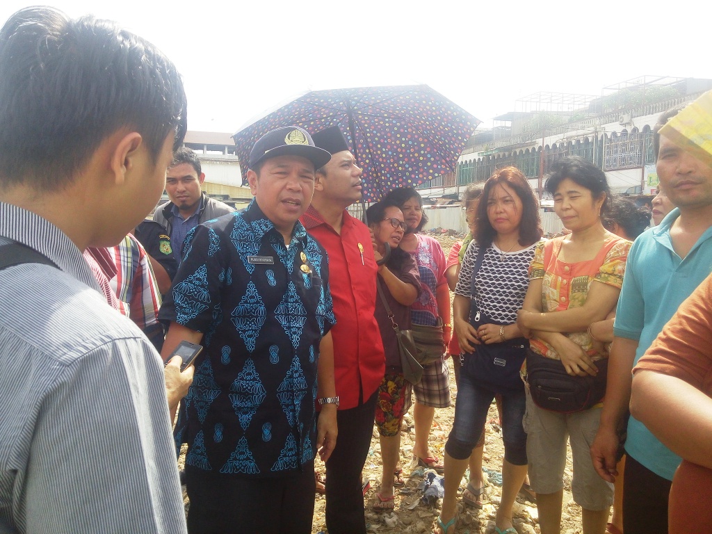 Boydo, Rusdi dan para pedagang terlibat perbincangan serius. Rusdi pun memastikan Pasar Kampung Lalang akan dibangun pada Senin (31/7/2017) mendatang.