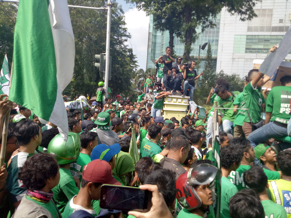 Tiga kelompok suporter PSMS Medan, yang terdiri dari SMeCK Hooligan, Kampak FC, dan PSMS Fans Club melakukan aksi demonstrasi di depan kantor Wali Kota Medan tadi siang.