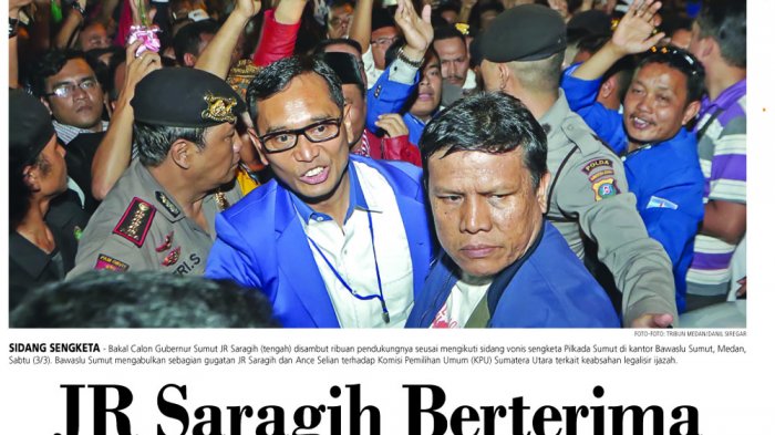 "Saya mengucapkan terima kasih kepada Tuhan, karena putusan tadi, sama-sama kita sudah mendengar bahwa majelis hakim membatalkan keputusan KPU yang mengatakan kami tidak bisa ikut maju Pilgub. Sehingga gugatan kami dikabulkan, terus melengkapi administrasi dengan meleges kembali ijazah sesuai prosedur. Itu akan segera kami lakukan," ujar JR Saragih usai pembacaan putusan oleh pimpinan majelis musyawarah Bawaslu Herdi Munthe di kantor Bawaslu Sumut Jalan Adam Malik, Sabtu malam, (3/3/2018) malam.