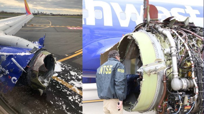 Pesawat Boeing 737-700 telah terbang 20 menit menuju Dallas ketika mesin sebelah kiri meledak.