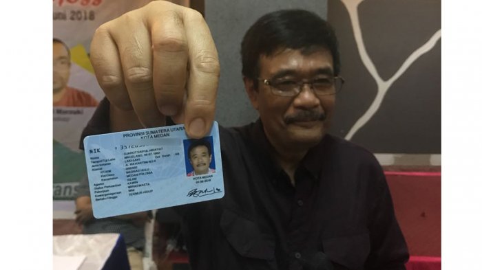 TRIBUN-MEDAN.com, MEDAN - Beredar foto Calon Gubernur Sumut Djarot Saiful Hidayat memperlihatkan e-KTP bertulisan warga Sumatera Utara.