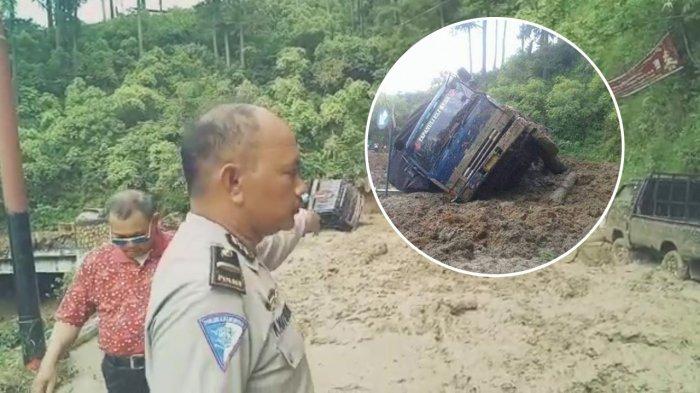 Informasi yang diterima Tribun Medan, truk tersebut oleng ketika lumpur menerjang.