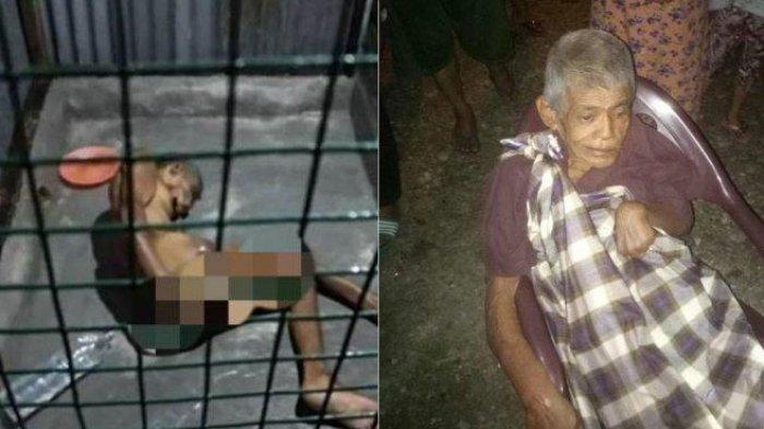 Pria berusia 68 tahun itu di-kerangkeng anak kandungnya sendiri dalam kondisi telanjang bak di dalam penjara.