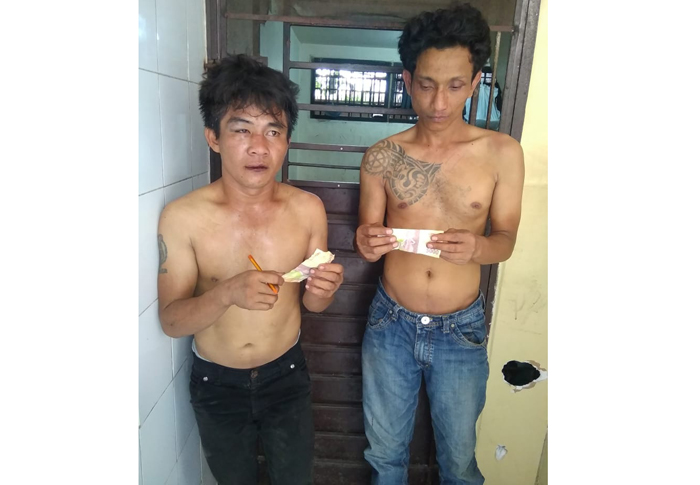 TRIBUN-MEDAN.com-Muhammad Amar (35) warga Sisingamangara Simpang Amplas, Gang Keluarga, Kelurahan Timbang Deli Kecamatan Medan Amplas dan Risky Purba, warga Jalan Gaharu Vll, Kelurahan Gaharu, Kecamatan Patumbak, kini Keduanya merasakan pengapnya tinggal di balik jeruji besi Polsek Medan Area.