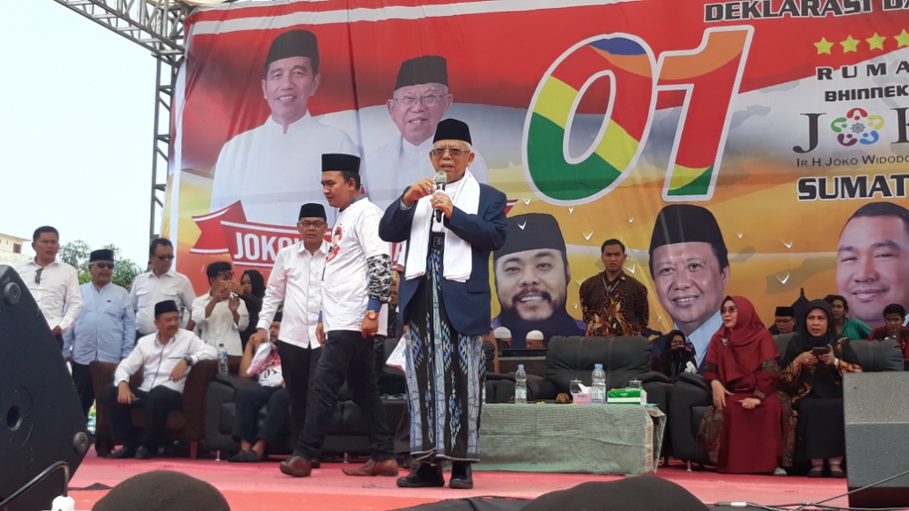 Hal tersebut disampaikan Ma'ruf dalam deklarasi Relawan Jokowi-Ma'ruf (Jokma) di Lapangan Gajah Mada, Krakatau, Medan.