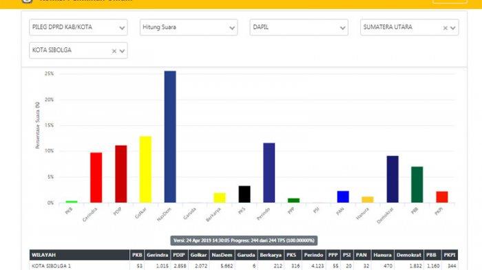 Berikut hasil ‘real count’ KPU untuk kursi DPRD Kota Sibolga: