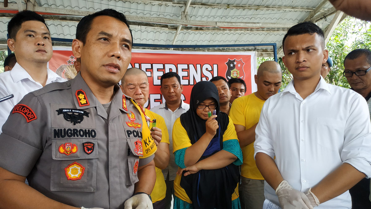 Kapolres Binjai, AKBP Nugroho Tri Nuryanto menyampaikan hasil pemeriksaan tiga tersangka dalam gelar perkara di Mapolres Binjai, Jalan Hasanuddin, Senin (24/6/2019).