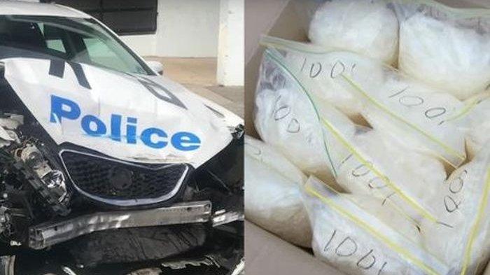 Pasalnya pengemudi mobil van yang membawa muatan narkoba jenis methamphetamine atau sabu itu menabrak sebuah mobil patroli polisi yang diparkir di pinggiran Sydney.