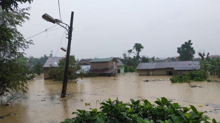 Amatan, Tribun hujan deras yang terjadi sejak malam Jumat (14/2/2020) telah membuat Sungai Babura meluap dan merendam ratusan rumah.