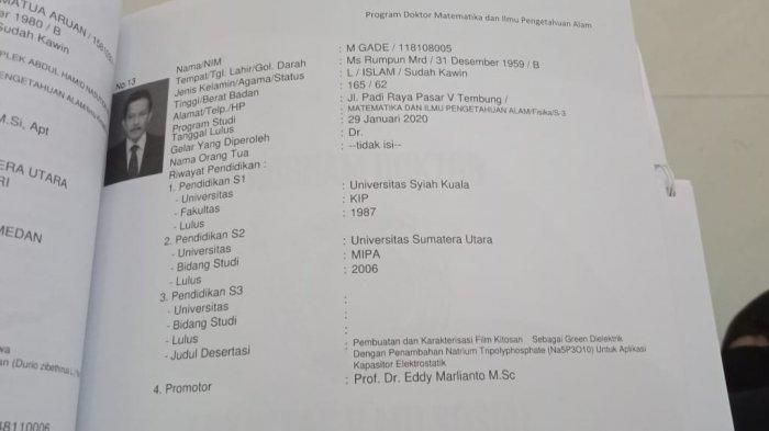 M Gade juga merupakan lulusan S1 Universitas Syiah Kuala dan mengambil S2 di USU.