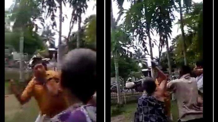 Aksi adu mulut yang terjadi antara kades dan lansia wanita ini lantas berubah jadi pertikaian fisik.
