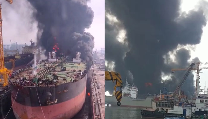 "Ini satu buah kapal sudah hampir seluruh kapal sudah terbakar. Jenis kapal tanker," jelasnya.