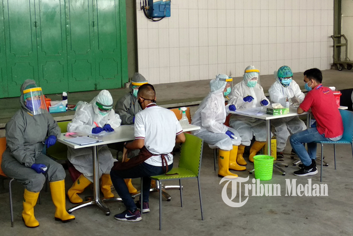 Dinas Kesehatan Kota Medan melakukan rapid test terhadap 108 karyawan Brastagi Supermarket Jalan Gatot Subroto, Medan.