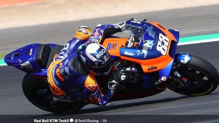 T R I BUN-MEDAN.com - Pebalap KTM Tech3, Miguel Oliveira, membuat kejutan setelah berhasil menjadi pemenang pada balapan pada seri kelima MotoGP Styria 2020 di Red Bull, Spielberg, Austria, Minggu (23/8/2020).