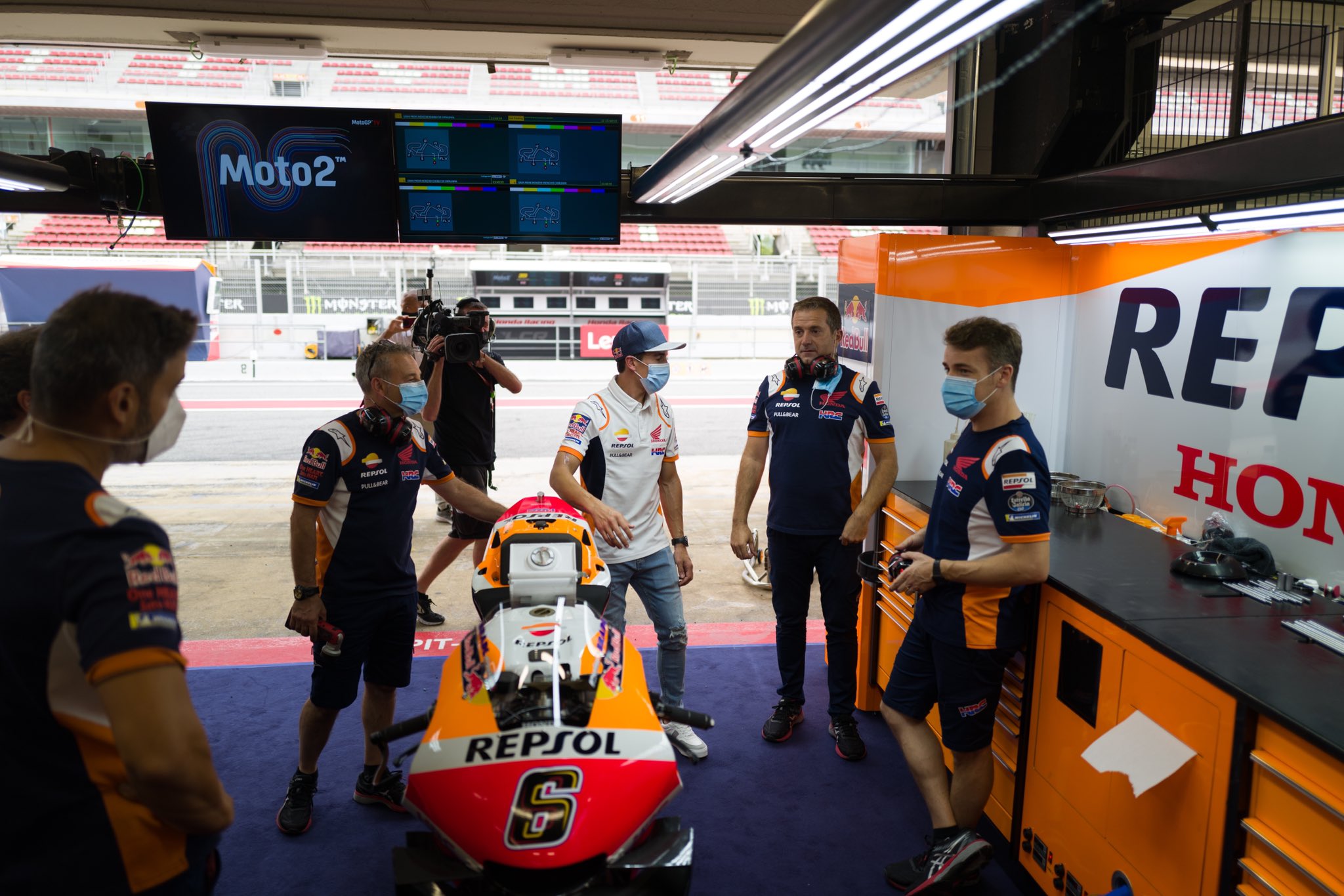 Pebalap Repsol Honda, Marc Marquez, menyambangi paddock MotoGP jelang GP Catalunya akhir pekan ini.