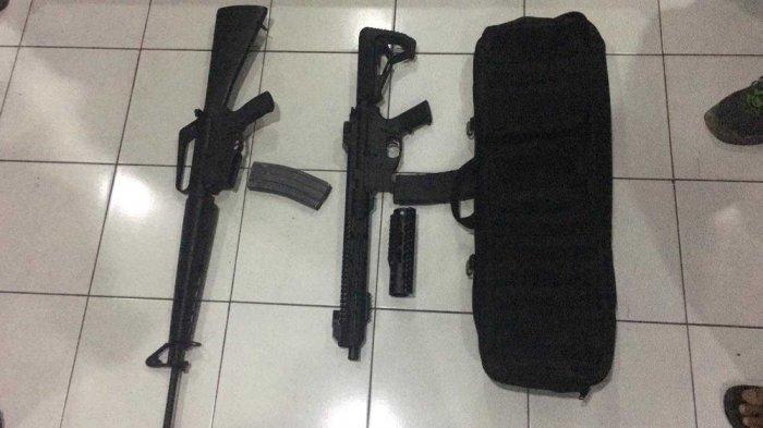Tak tanggung tanggung oknum Brimob Bripka JH diamankan bersama dua pucuk senapan serbu jenis M-16 dan M4.