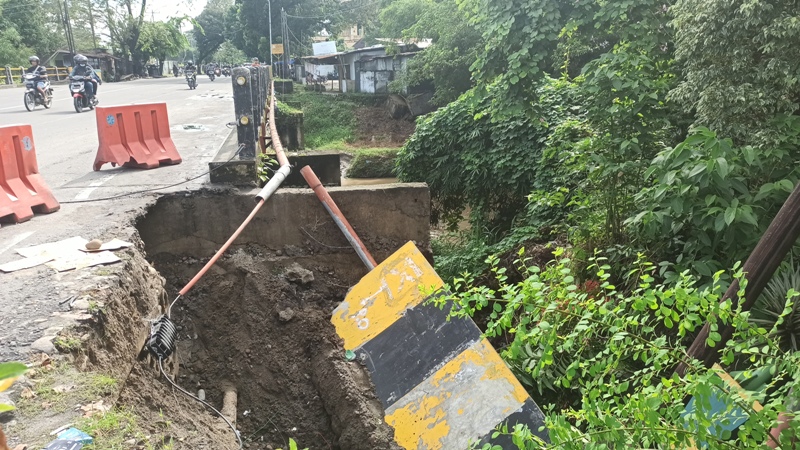 Mahmud mengatakan, bahwa tepi jembatan Jalan Adam Malik ini memang kopong dan tak heran jika tanah mudah ambles.