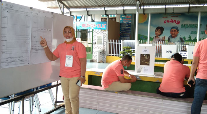 Kepala Bidang (Kabid) Pembinaan Lapas Klas I Medan, Tiwi Sembiring saat melakukan perhitungan surat suara, Rabu (9/12/2020).