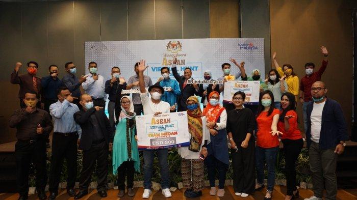 TRIBUNMEDAN.ID, MEDAN - Rangkaian program Malaysia Truly Asia ASEAN Virtual Hunt 2020 diakhiri dengan penyerahan hadiah kepada pemenang juara 1 tim Twin Towers dan juara 2 tim Berjaya, serta hadiah hiburan untuk regu Hibiscus yang menduduki peringkat ke-6 dari 30 tim di 9 negara ASEAN yang ikut serta. Penyerahan hadiah diberikan langsung oleh Konsul Jendral Malaysia Medan, Aiyub Omar, di Hotel Santika Premiere Dyandra pada 23 Desember 2020.