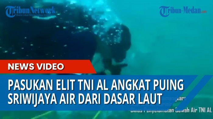 Rekaman itu memperlihatkan pasukan elit TNI AL menemukan serpihan kecil Sriwijaya Air SJ 182.