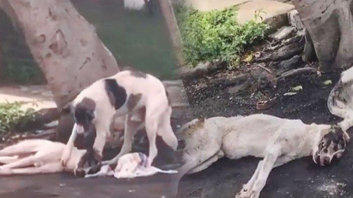 Dalam rekaman yang menjadi viral online, ada seekor anjing lain yang terekam sedang berbaring di sisi anjing yang terluka.