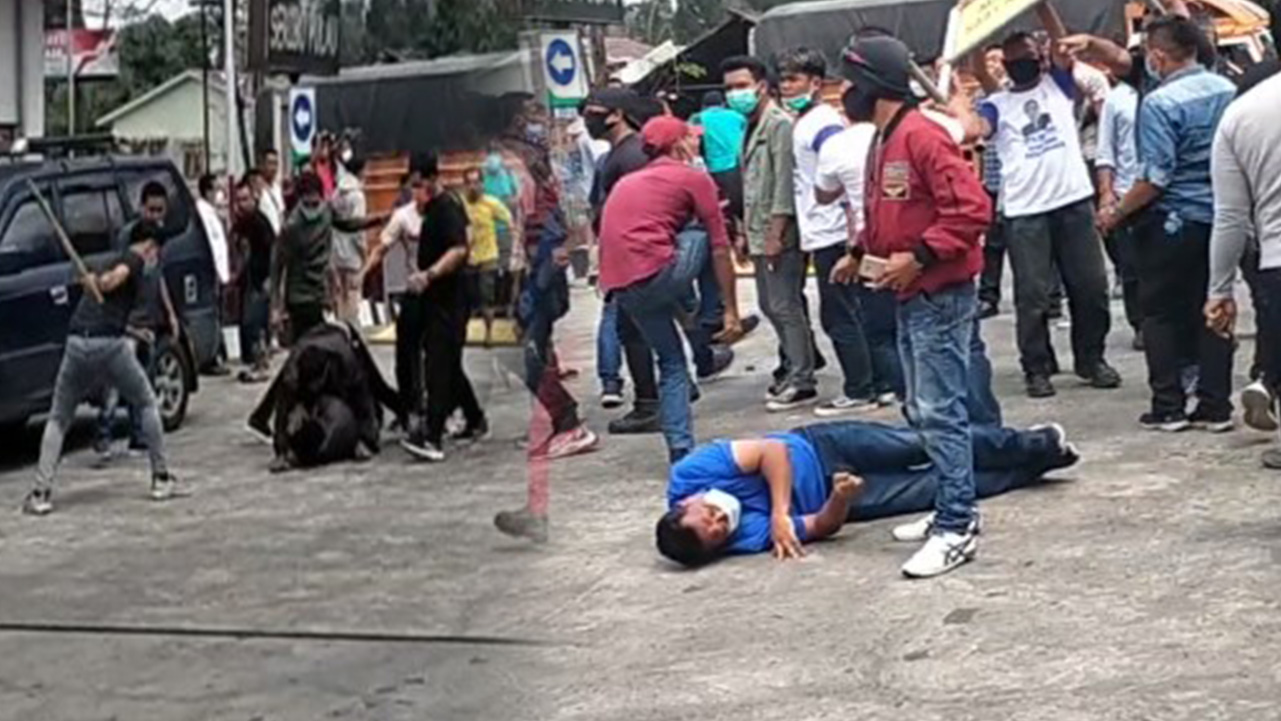 TRIBUN-MEDAN.COM - MASSA pendukung Kongres Luar Biasa (KLB) Partai Demokrat versi Moeldoko menyerang pendukung Partai Demokrat Sumut di Desa Suka Makmur Sibolangit, Jumat (5/3/2021).