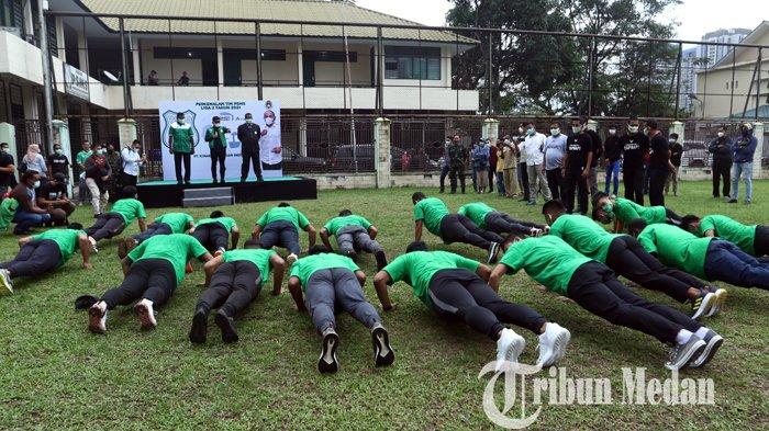 TRIBUN-MEDAN.COM - Gubernur Sumut Edy Rahmayadi mengunjungi markas PSMS Medan dan berbincang dengan pemain saat perkenalan tim di Stadion Kebun Bunga, Medan, Senin (29/3/2021). Edy Rahmayadi berharap skuat ayam kinantan fokus dengan latihan dan dapat bersaing untuk promosi ke Liga 1.