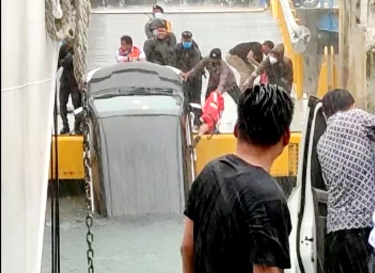 Dalam rekaman video itu terlihat pula mobil Avanza tersebut sudah nyaris naik bagian depannya ke dermaga.
