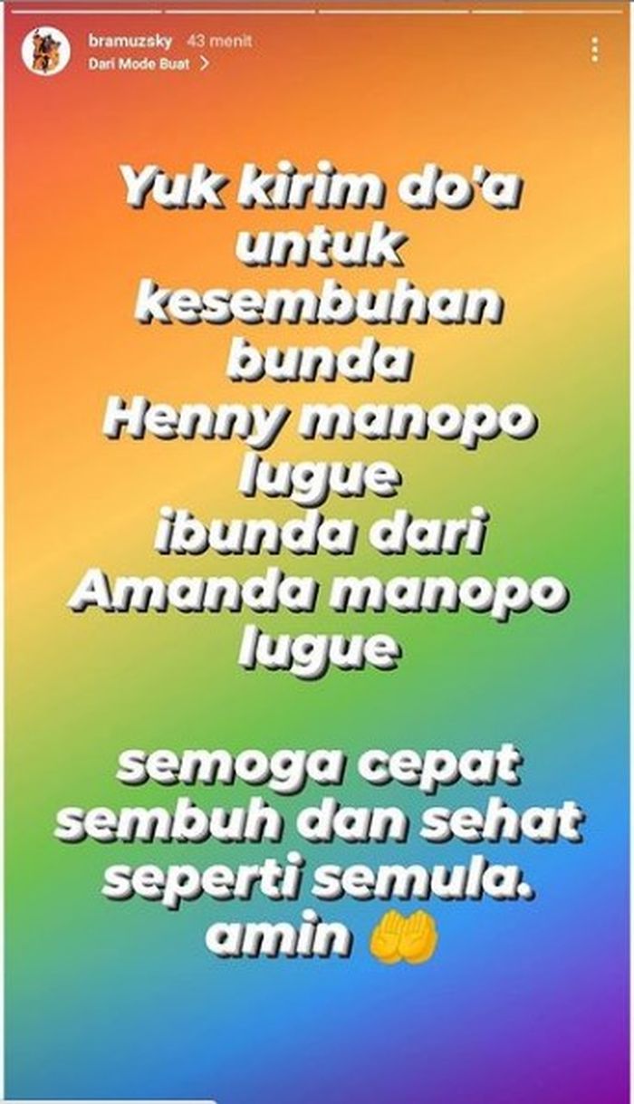"Rest on love mami Henny Manopo Lugue," tulis Ricco Ricardo, Minggu (25/7/2021).
