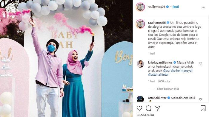(Kebahagiaan yang penuh cinta tumbuh di rahimmu dan akan segera hadir di dunia untuk menerangi rumahmu! Berharap yang terbaik untuk pasangan ini! Semoga anak ini menjadi sumber cinta dan harapan. Selamat Atta dan Aurel)," tulis Raul di akun Instagram-nya, Minggu (29/8/2021).