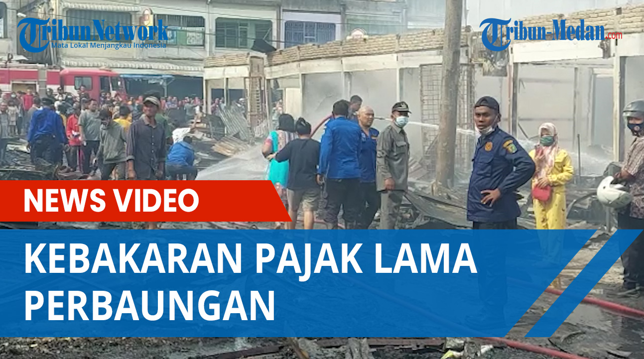 80 kios permanen, 100 kios tidak permanen, dan enam ruko terbakar di Pajak Lama Kelurahan Simpang Tiga Perbaungan.