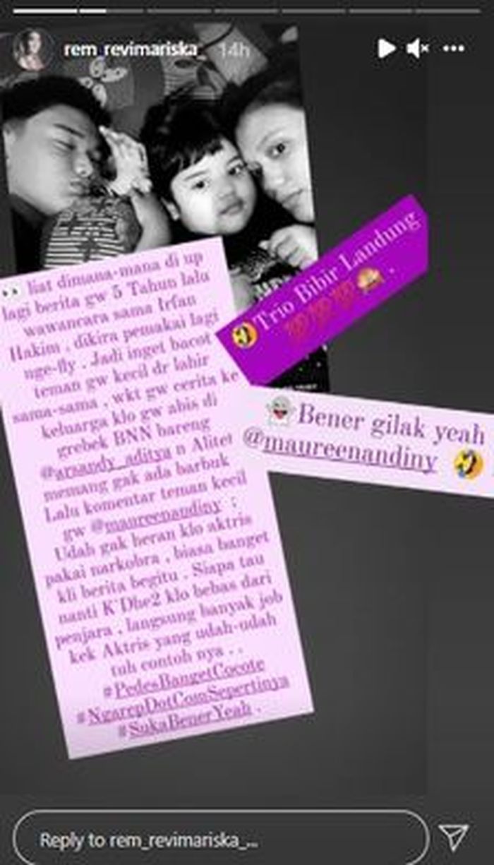 Revi Mariska juga menyoroti respons salah satu temannya yang menyebut bahwa narkoba bukanlah hal asing di dunia selebriti.