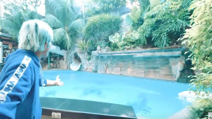 Tak hanya itu Denny Cagur juga memiliki kolam renang yang didesainnya bak waterpark.