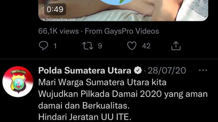 TRIBUN-MEDAN.com,MEDAN - Kepolisian Daerah Sumatera Utara menyampaikan permohonan maaf terkait viralnya akun twitter resmi Polda Sumut yang menyukai postingan video porno di akun resminya.