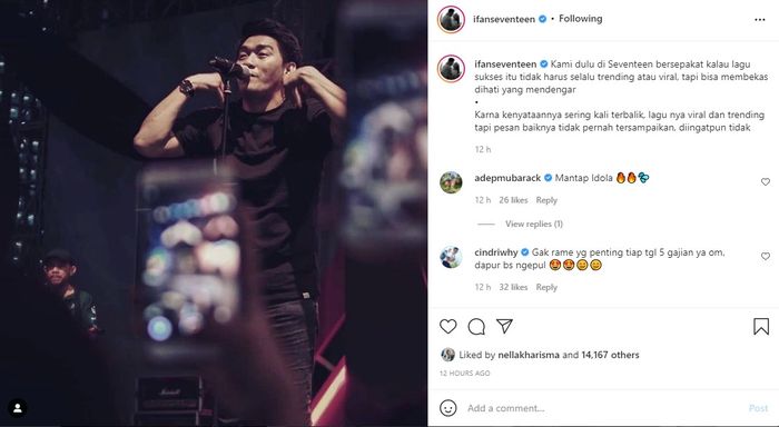 Sementara itu penyanyi aslinya, Ifan Seventeen, nampak mengunggah fotonya saat sedang bernyanyi di atas panggung.