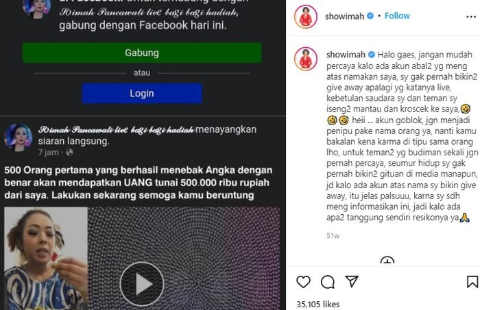 Soimah mengalami musibah ada oknum yang tidak bertanggung jawab mencatut namanya.