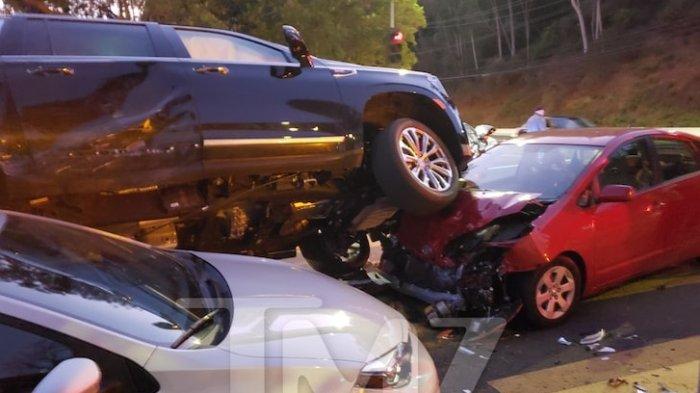 Laporan tersebut menyatakan, pengemudi Prius merah terluka parah setelah Yukon mulai berguling dan bertabrakan dengannya.