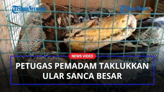 Petugas pemadam kebakaran Medan melakukan aksi menaklukan ular sanca dengan ukuran yang cukup besar.