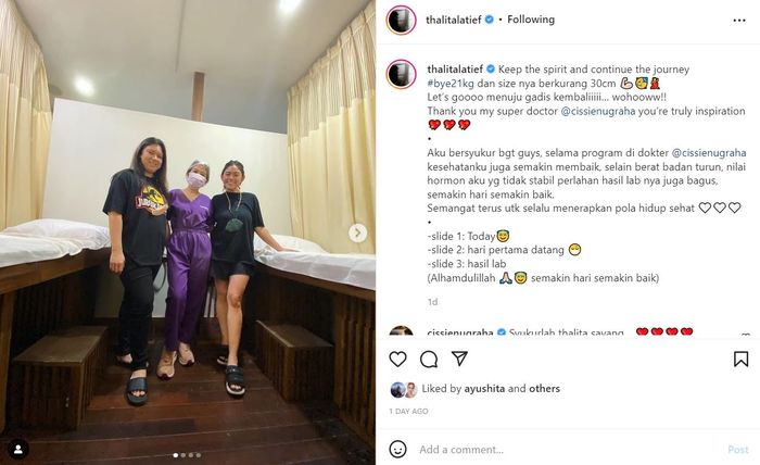 "Thank you my super doctor @cissienugraha you’re truly inspiration," tulis Thalita Latief.