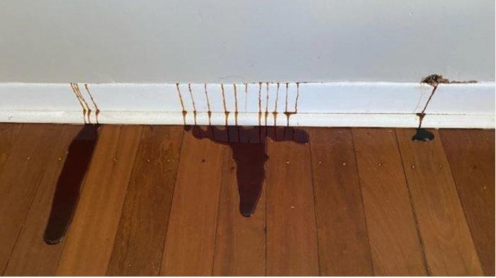 "Cairan gelap dan kental ini mengalir keluar dari dinding dan tiang. Ini terlihat sangat aneh. Itu tampak seperti darah dan saya benar-benar takut,” katanya.