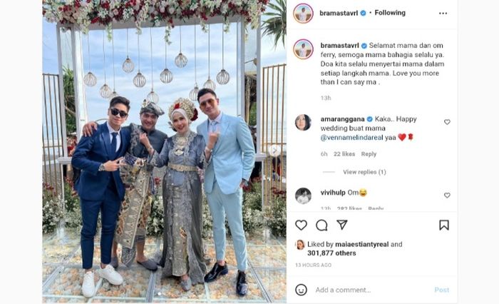 "Selamat mama dan om ferry, semoga mama bahagia selalu ya," tulis Verrell Bramasta, dikutip GridFame.id dari Instagram pribadinya.